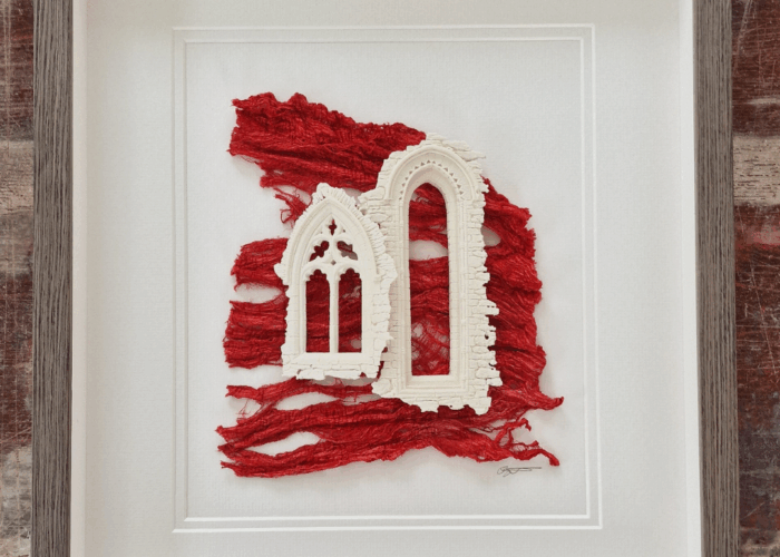 Fragile edges, cracks and weathered stone are intentionally created as a reflection of life. The two windows, joined yet facing away from one another, symbolising the unbreakable bond between mother and child, while also acknowledging the independence of separate lives.