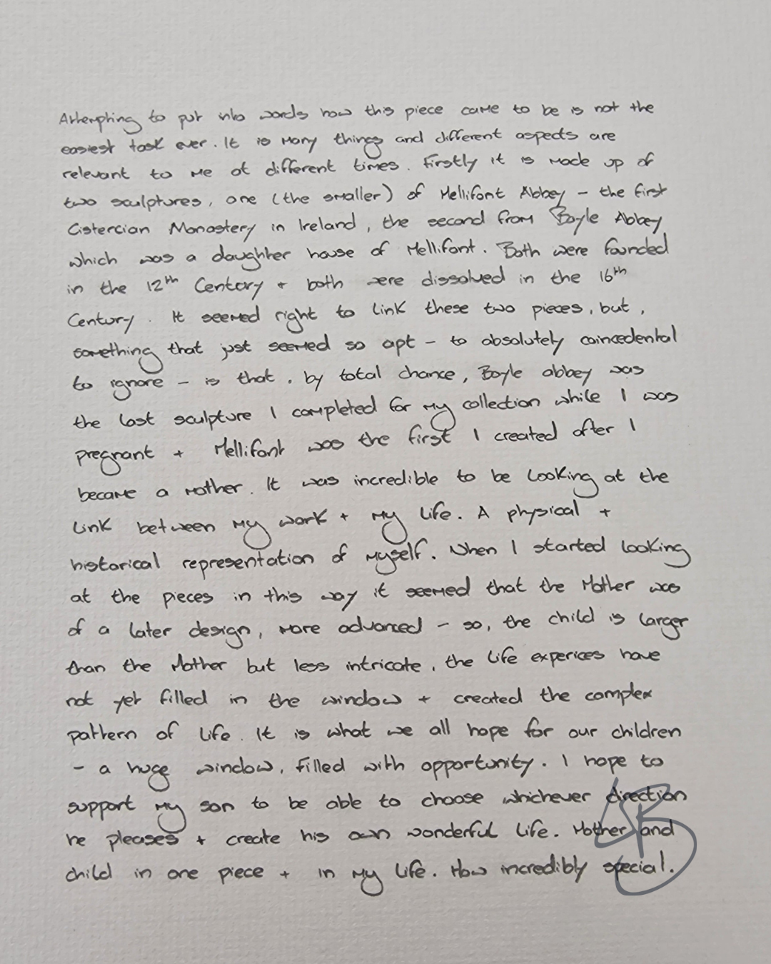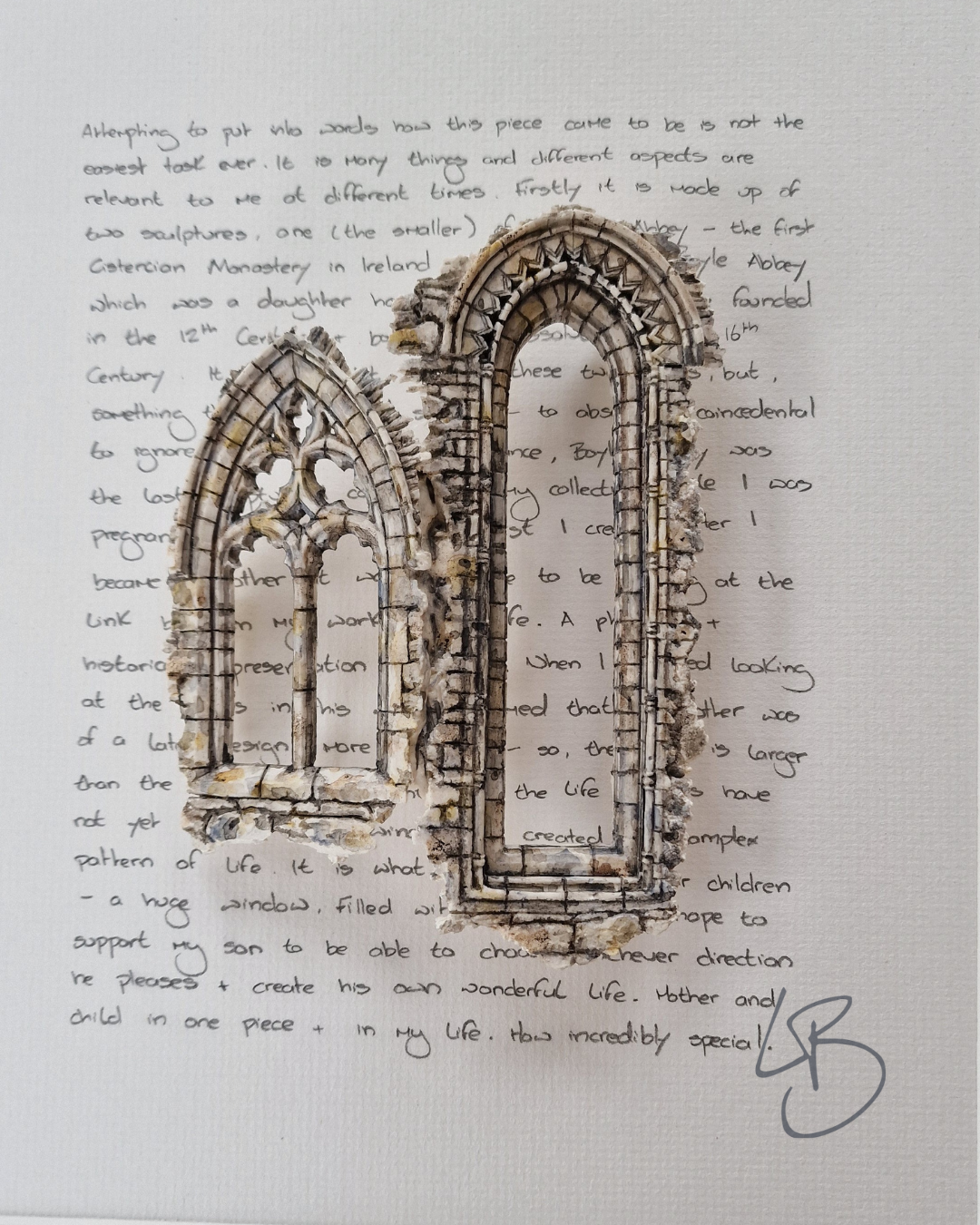 It seemed right to link these two pieces, but, something that just seemed so apt – to absolutely coincidental to ignore – is that, by total chance, Boyle abbey was the last sculpture I completed for my collection while I was pregnant and Mellifont was the first I created after I became a mother.