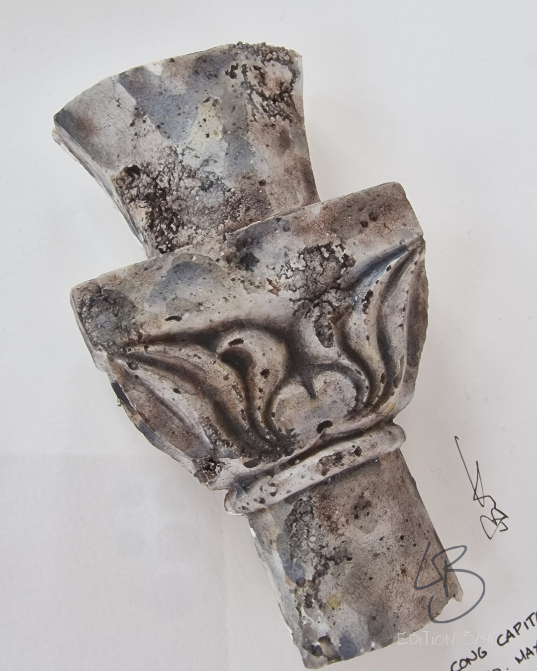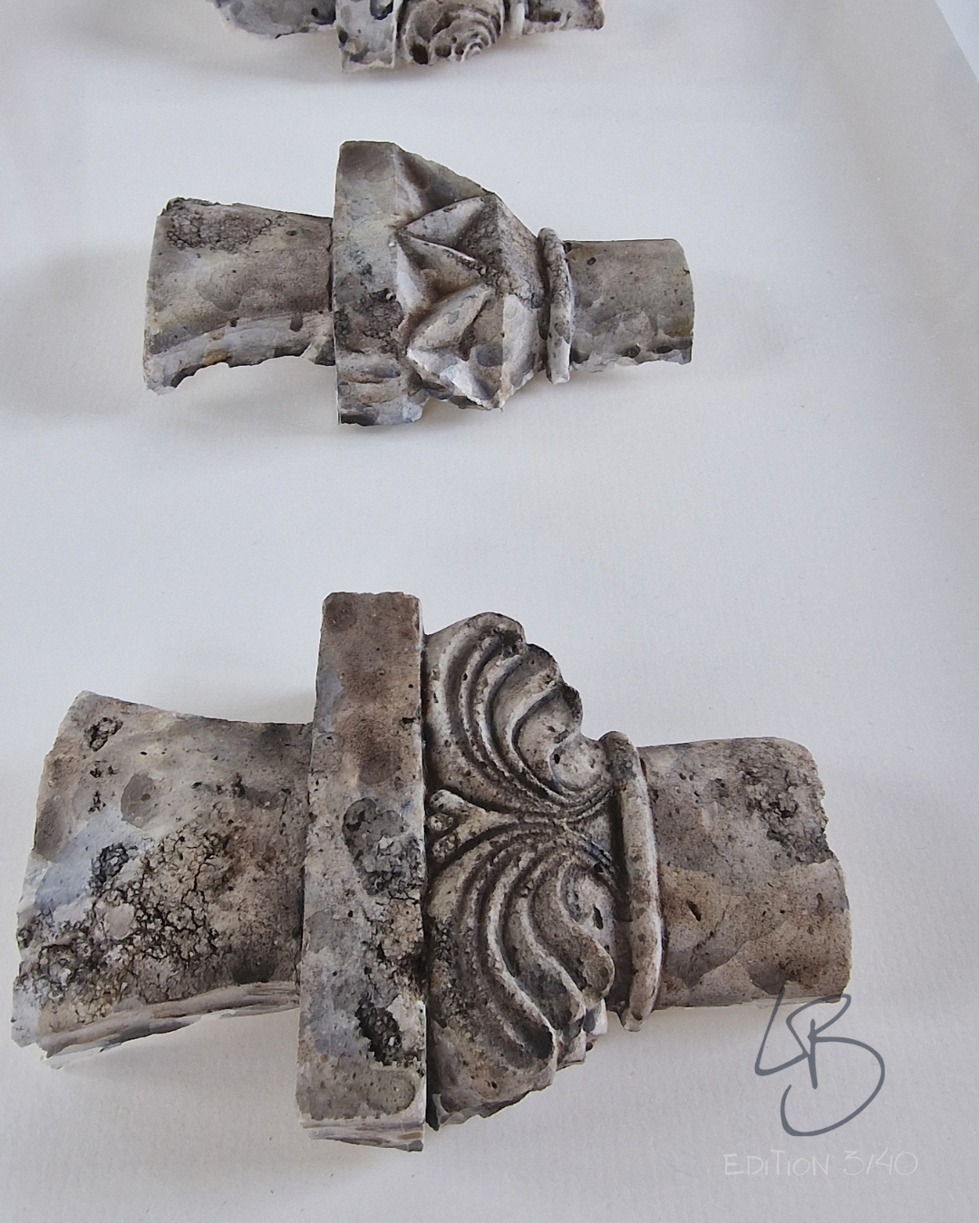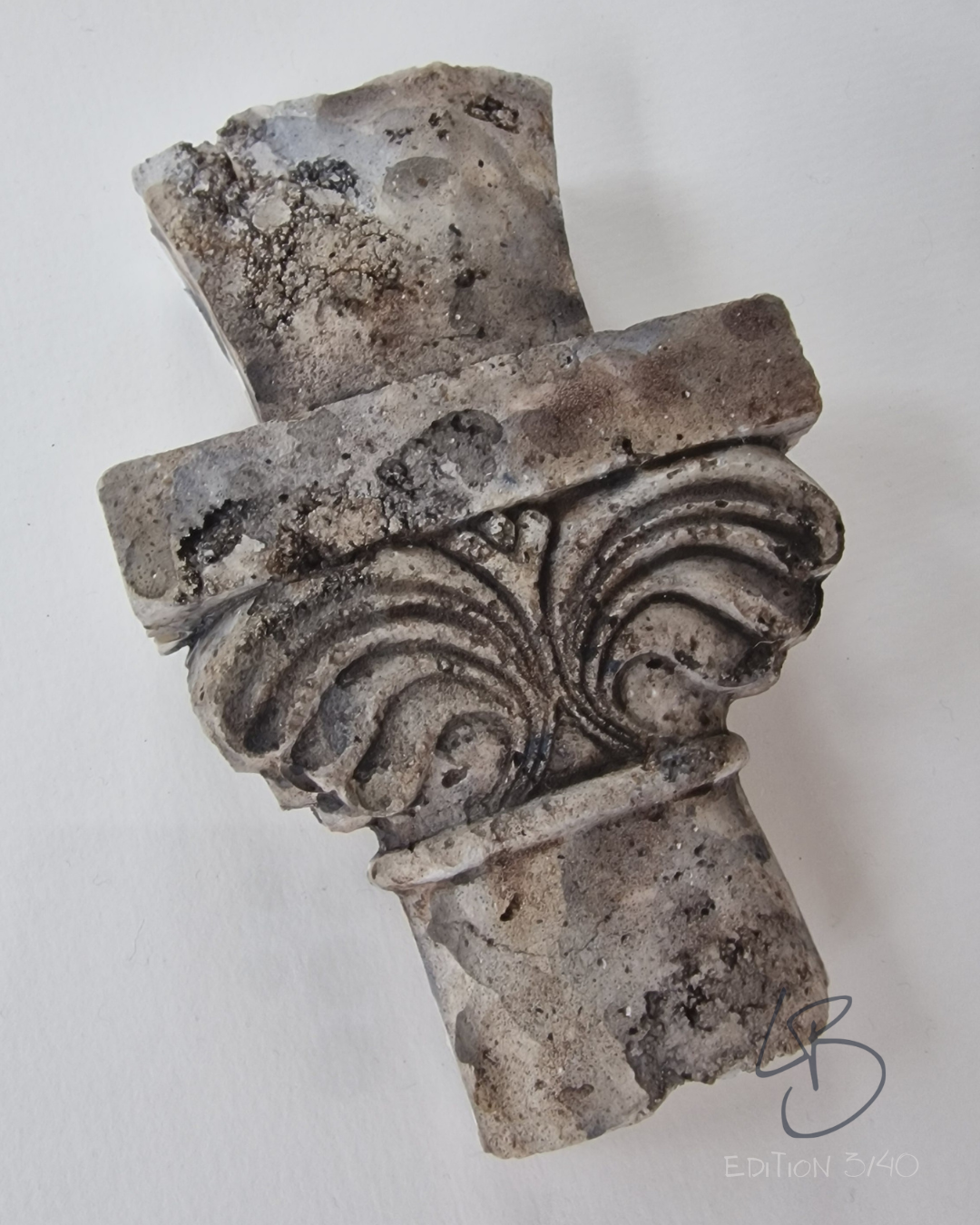 These sculptures of the capitals from the cloister at Cong Abbey, Co. Mayo are limited edition sculptures of 40 pieces, all made in my studio in the West of Ireland. Each piece is made individually so the colours and finish of each piece will vary. The photos are of edition 7 of 10.