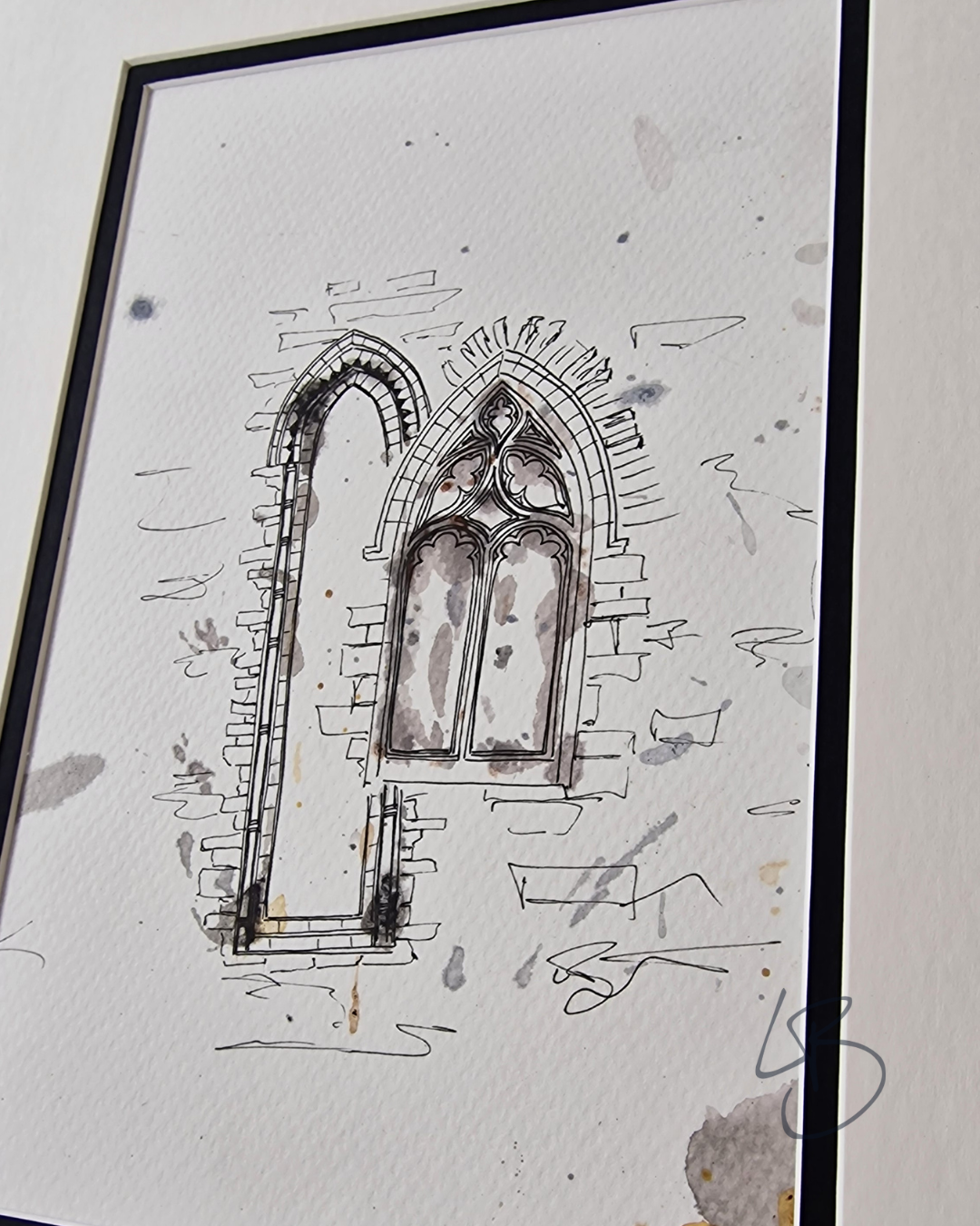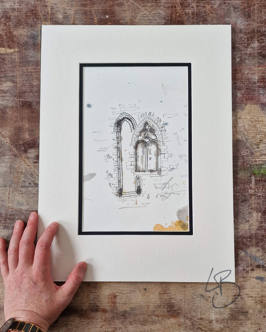 The artwork is double-mounted using acid free mountboard, a cream outer layer with a black inner layer to beautifully frame the piece. It is ready to pop into any standard 12″ x 16″ (30.5cm x 40.6cm) frame and hang straight on your wall!