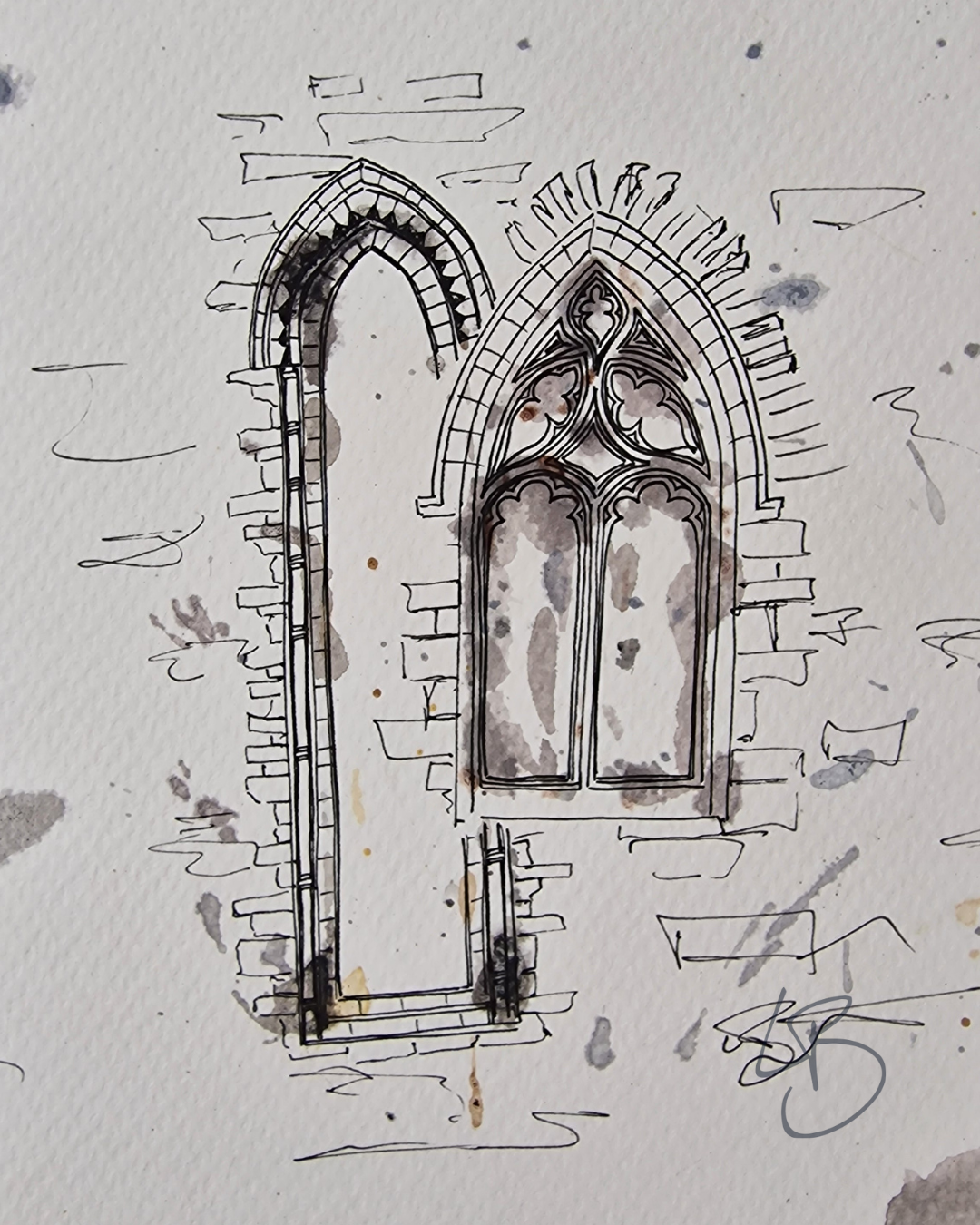 This drawing began with the Ghost Window created from painting edition 2 of my sculpture based on Mellifont Abbey, Co. Louth and edition 2 of Boyle, Co. Roscommon.