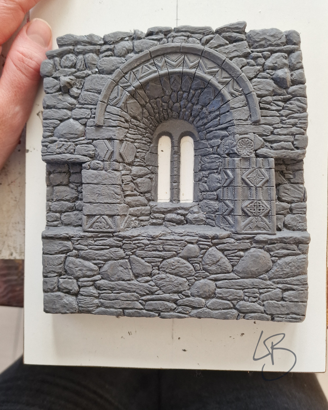 This 11th century Romanesque window is the most detailed work I have created in several years, featuring: Celtic knotwork, a lion-dragon and lots of other detail along with the most beautiful stone.